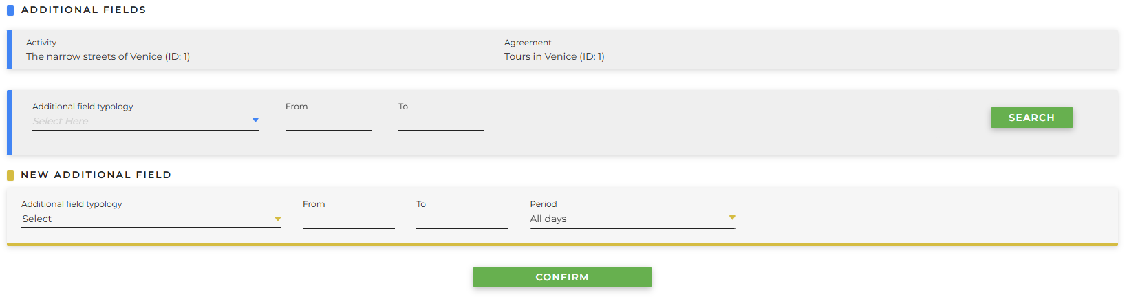 - From / To: start and end date during which the additional fields are valid