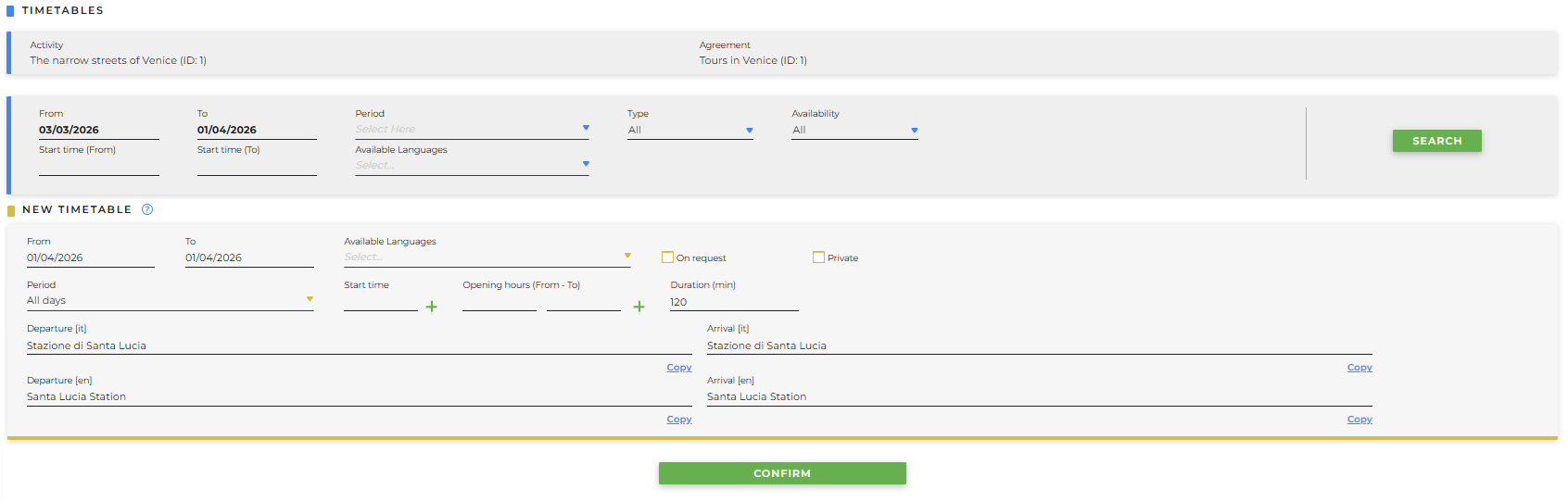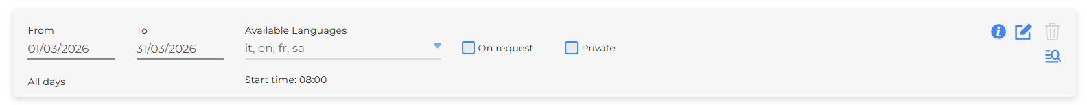 - Private: if checked, it is not required to fill in the times and days of the week when the tour is available; these must instead be arranged directly with the guide