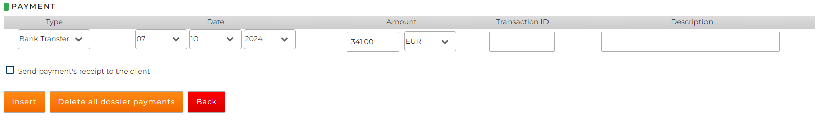 If this section is visible by Tour Operator, it allows you to generate payment links.