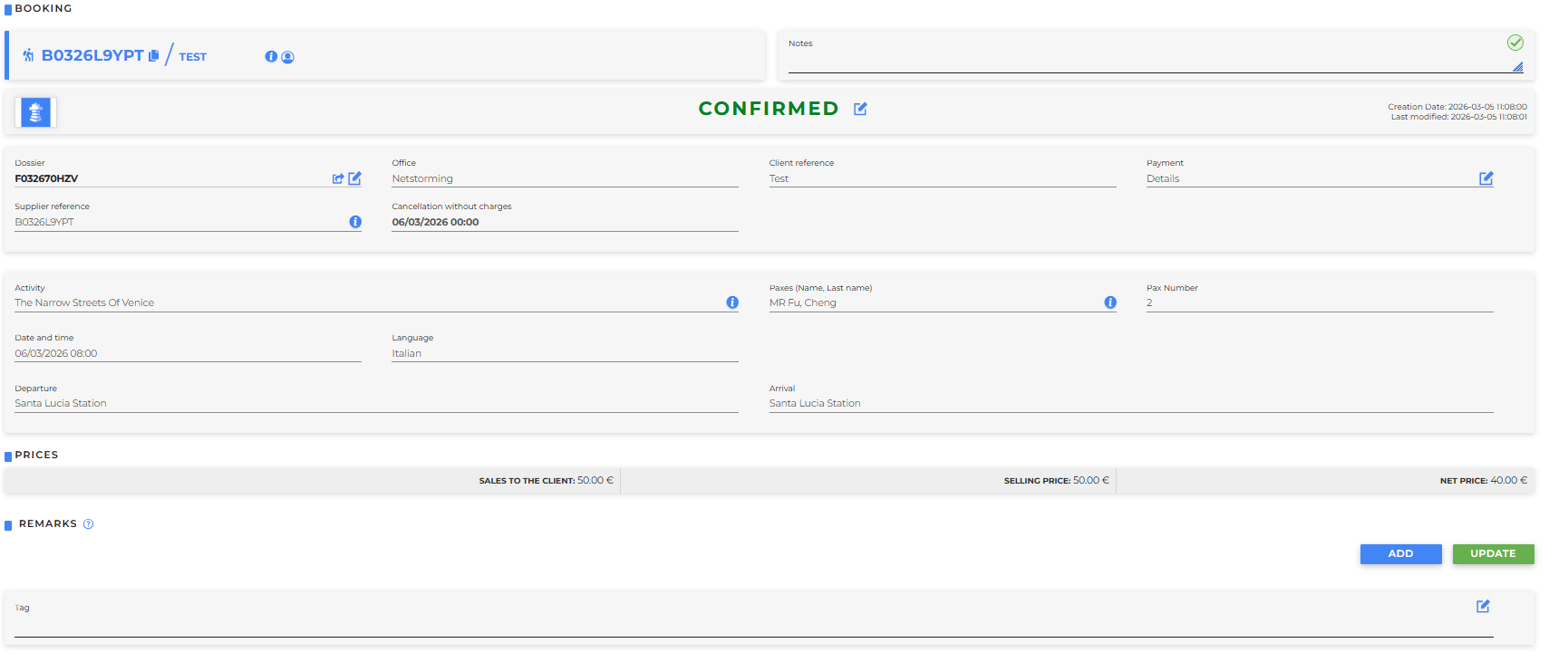 - Remarks: it is possible to add them even after booking