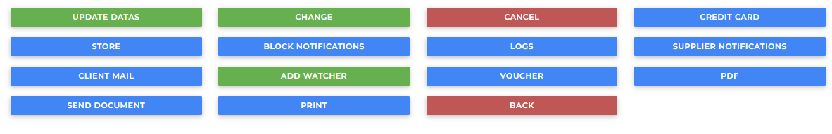 For each service, the following buttons are available: