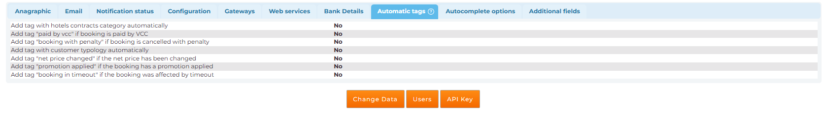 From this section it is possible to set up the addition of automatic tags within reservations, to facilitate grouping for searching them.