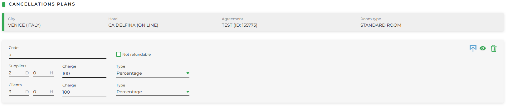 This section allows you to set cancellation policies related to the entire contract validity, or to individual periods. These policies will override the cancellation set in the Allotment tab.