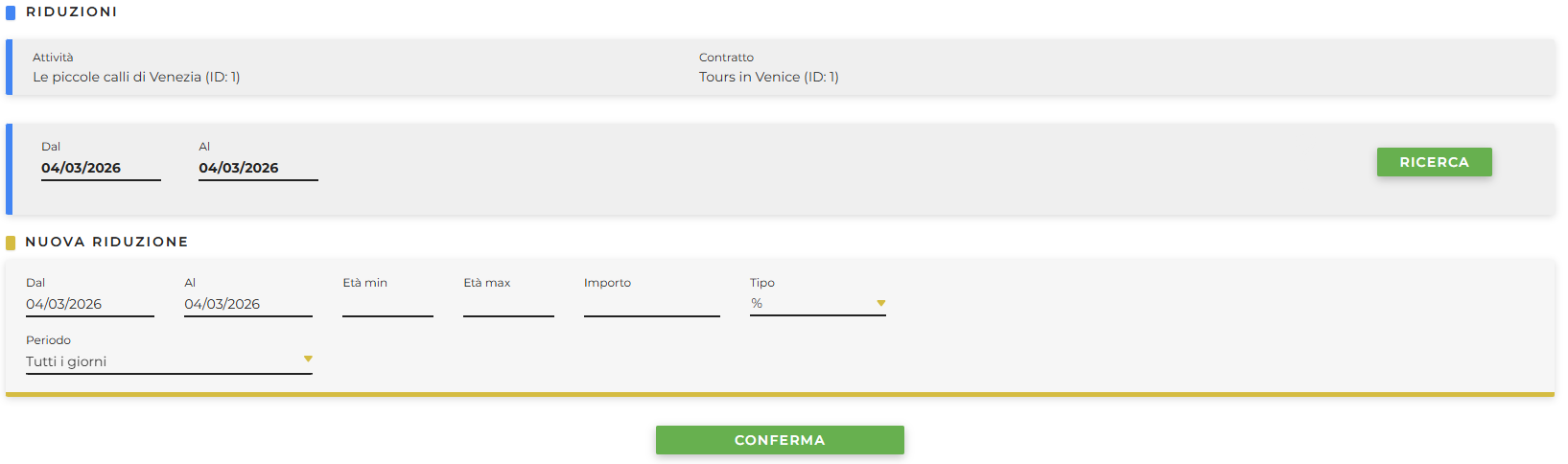 - Dal /Al: inserire le date in cui la riduzione è valida