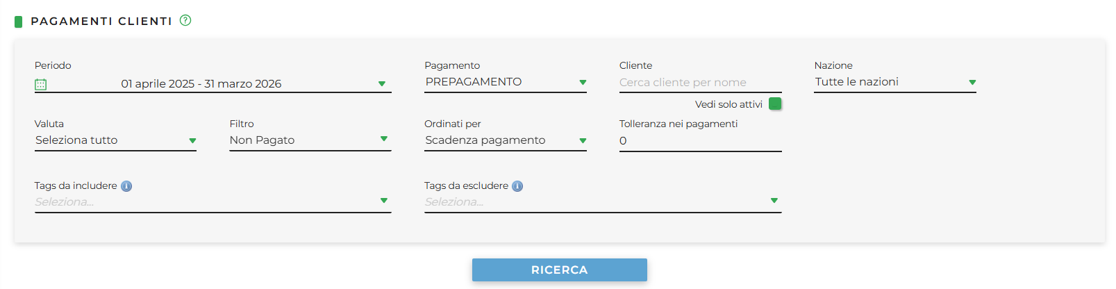 Questa sezione permette di estrarre i dettagli relativi ai pagamenti ai fornitori in modo da poterli confrontare con gli estratti conto che hanno inviato. È possibile ricercare per: