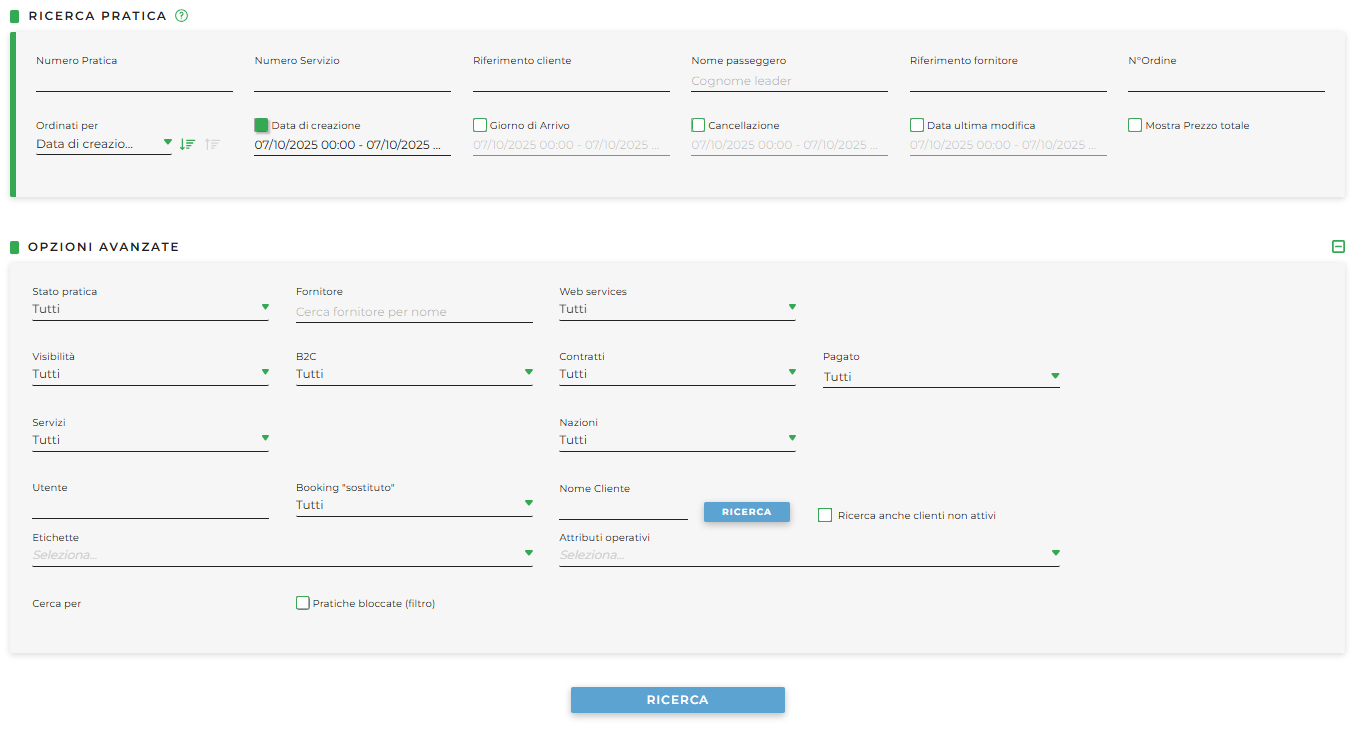 Dopo aver fatto una prenotazione, il Tour Operator può trovarla nella sezione Gestione Pratiche > Ricerca Pratica.