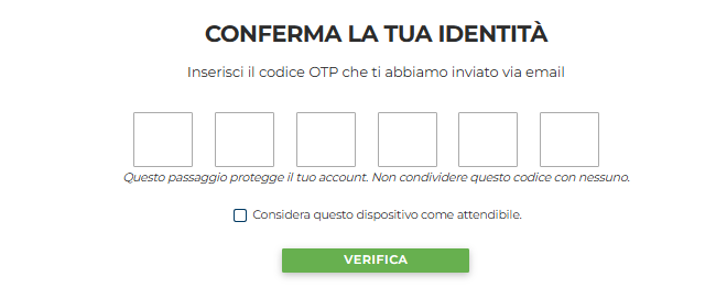 per cui verrà inviata una mail all'utente autenticato con il reindirizzamento ad una pagina con il codice temporaneo da dover inserire negli appositi spazi.