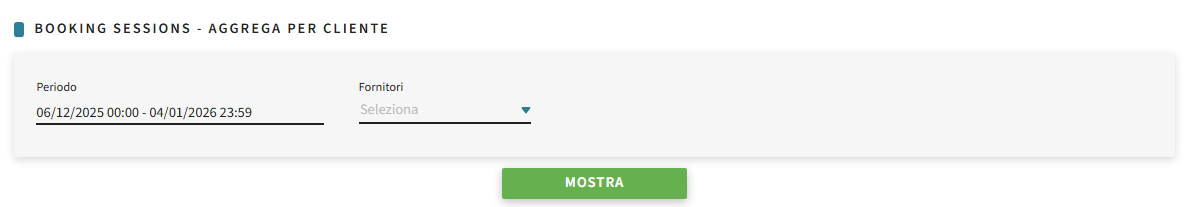 Aggrega per cliente dove sarà possibile monitorare quali Clienti stanno inviando traffico ai Fornitori visualizzando quindi quali clienti hanno generato più booking session. Sarà possibile definire: