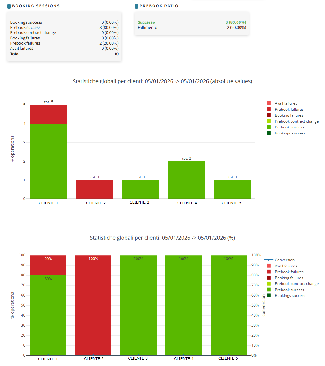 Il report descrive nel dettaglio le quantità di successo e fallimento di ogni fase del processo di prenotazione, con gli status spiegati a fine di questa pagina.