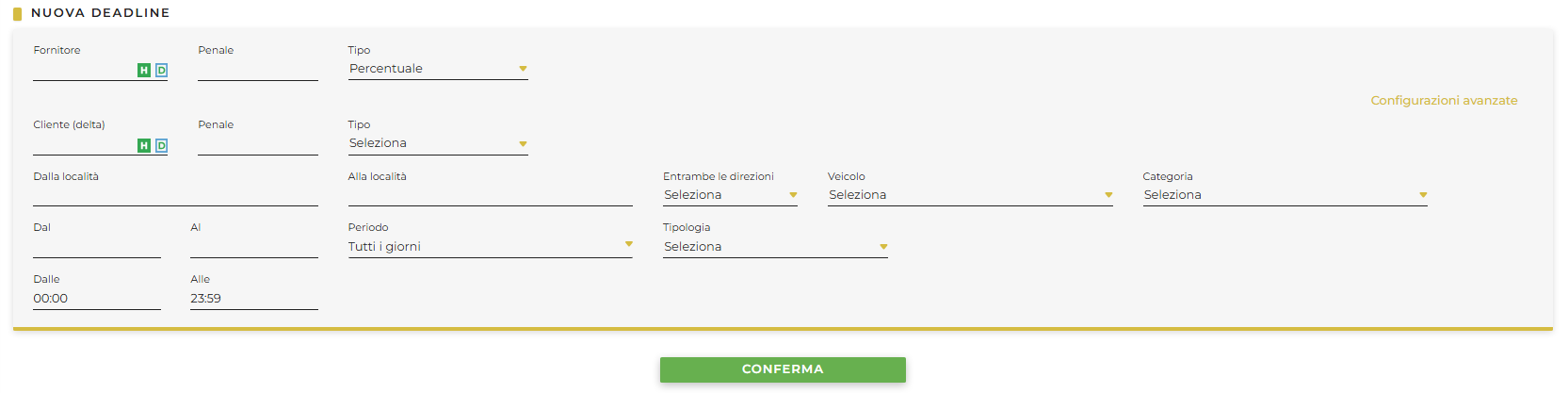 In questa sezione è possibile inserire una Nuova deadline, specificando delle policy di cancellazione;